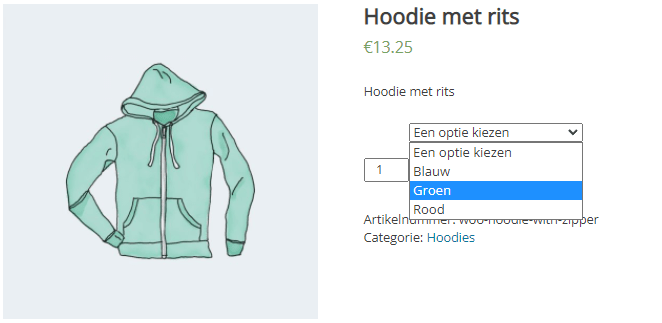 Productvariaties zie je vaak in webshops. Je kunt dan bijvoorbeeld de kleur of maat van een hoodie kiezen.