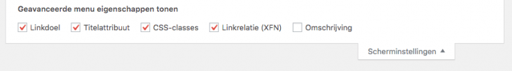 Hiermee kun je menu-items nog verder aanpassen.